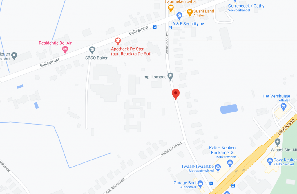Volg de A12 en N16 naar de Doornstraat in Temse. Ga verder op de Doornstraat. Rijd naar de Eekhoornstraat in Sint-Niklaas.