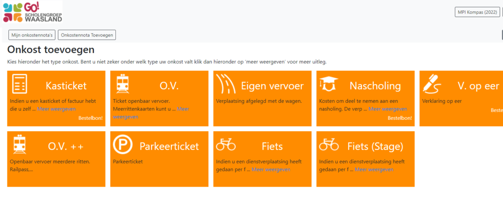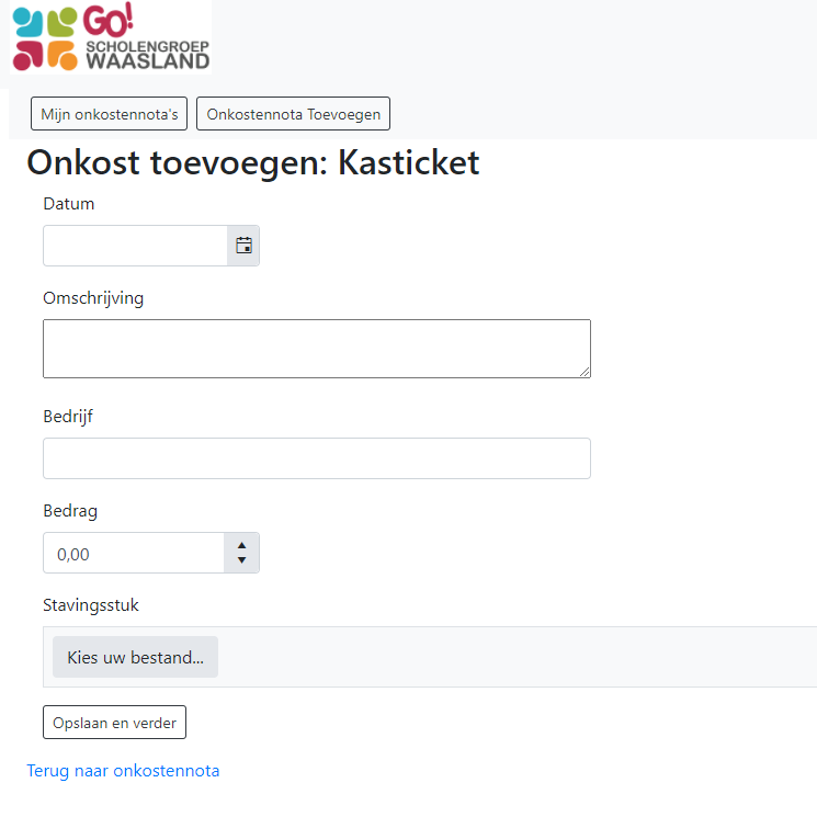 Daarna kan je een onkostennota invoeren.
